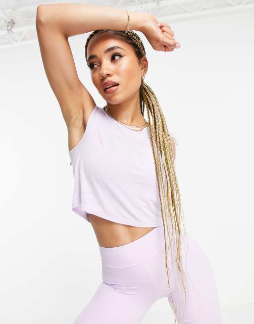 South Beach – Liliowy top na ramiączkach do jogi z wiązaniem na ramieniu