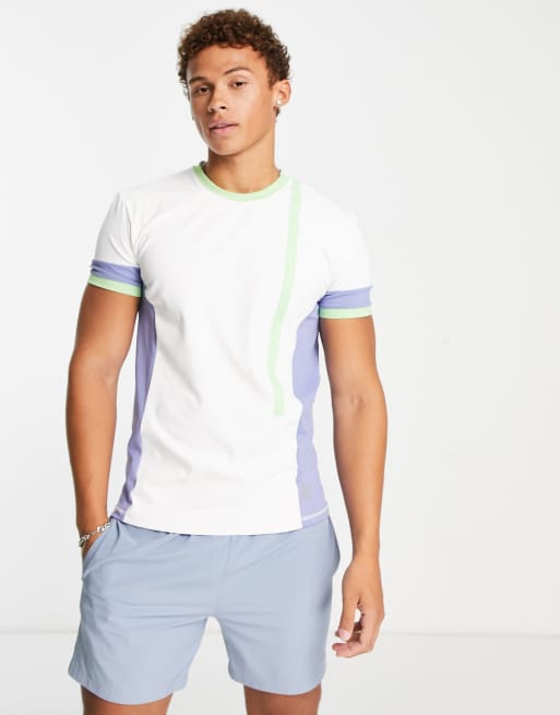 South Beach Man – Kremowy T-shirt z poliestru z kolorowymi wstawkami