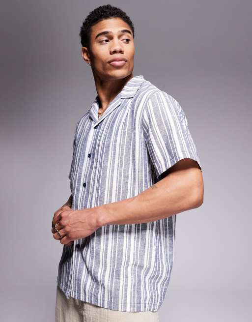 South Beach – Niebiesko-biała koszula plażowa z krótkimi rękawami, w paski