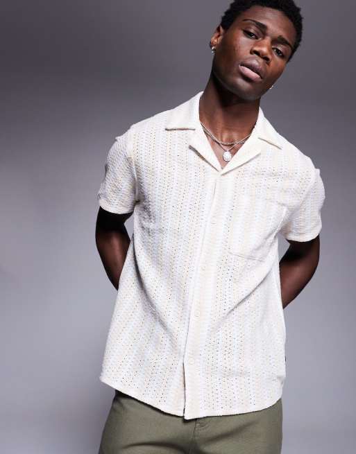 South Beach – Plażowa dzianinowa koszula w beżowym kolorze