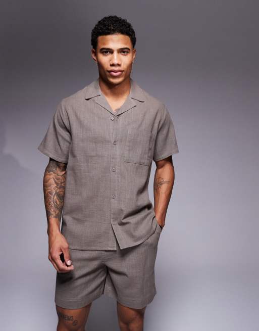 South Beach – Szara teksturowana koszula plażowa z krótkimi rękawami, część zestawu