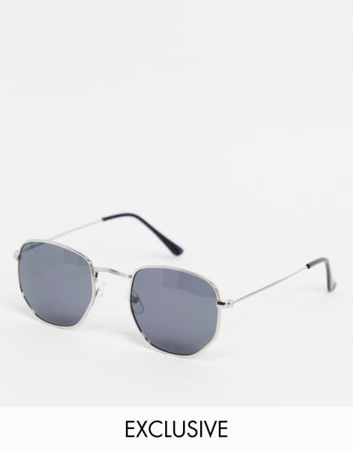 South Beach – Sześciokątne okulary przeciwsłoneczne w srebrnych oprawkach