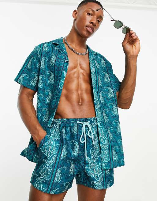 South Beach – Turkusowe szorty kąpielowe we wzór bandany, część zestawu