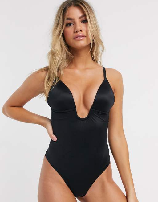 Spanx – Suit Your Fancy – Czarne modelujące body z głęboko wyciętym tyłem i dołem o fasonie thongów