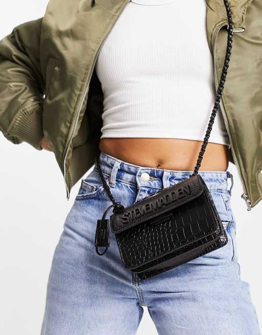 Steve Madden – Bbet – Czarna torebka na ramię z efektem skóry krokodyla