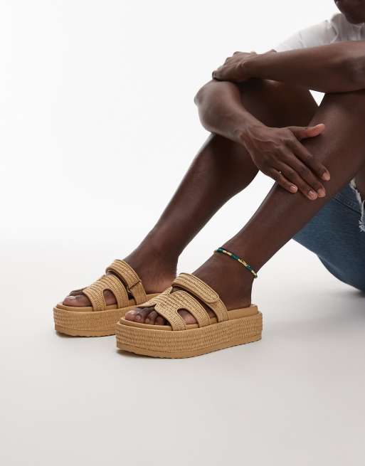 Steve Madden – Big Missile – Sandały z rafii w naturalnym kolorze na grubej płaskiej platformie