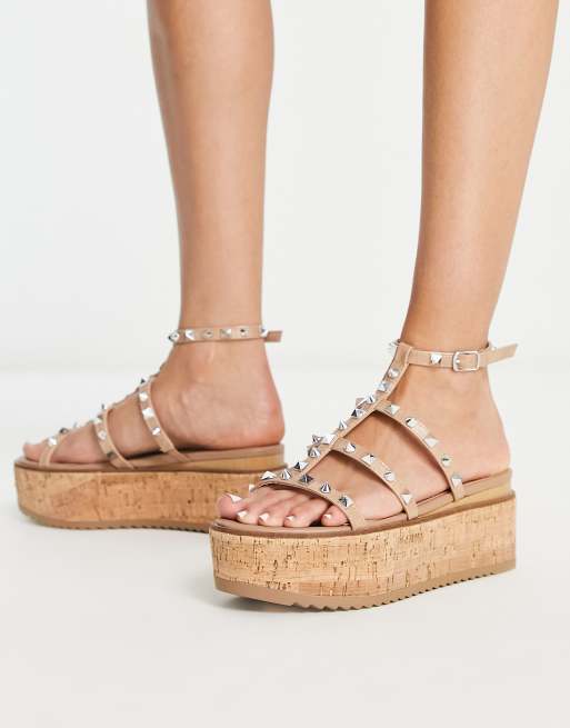 Steve Madden – Clovis – Jasnobrązowe sandały z ćwiekami na płaskiej platformie