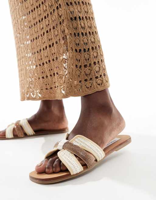 Steve Madden – Edriah – Płaskie sandały z rafii ze zdobionym paskiem