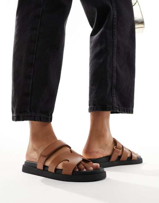 Steve Madden – Missile – Jasnobrązowe klapki skórzane z paskami