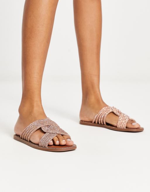 Steve Madden – Neles – Zdobione płaskie sandały w kolorze różowego złota
