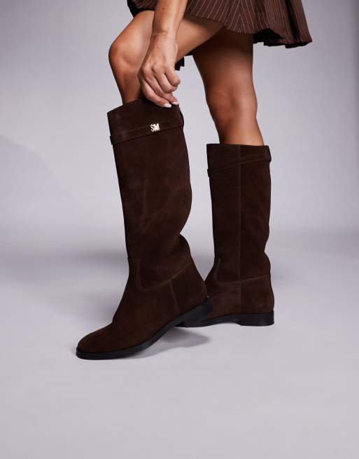 Steve Madden – Novi DK – Czekoladowe zamszowe buty jeździeckie z klamrami
