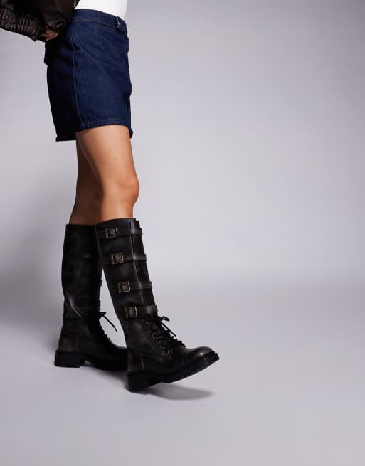 Steve Madden – Rox DK – Brązowe sznurowane buty ze skóry z efektem znoszenia z klamrami
