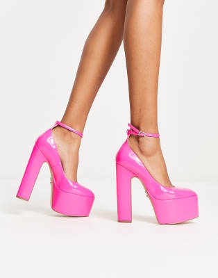 Steve Madden – Skyrise – Jaskraworóżowe lakierowane buty na platformie