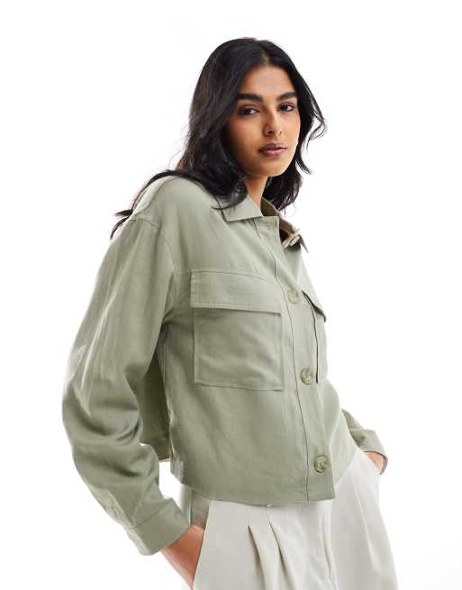 Stradivairus – Kurtka koszulowa z mieszanki lnu w kolorze khaki