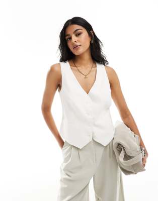 Stradivarius – Biała kamizelka z imitacji lnu