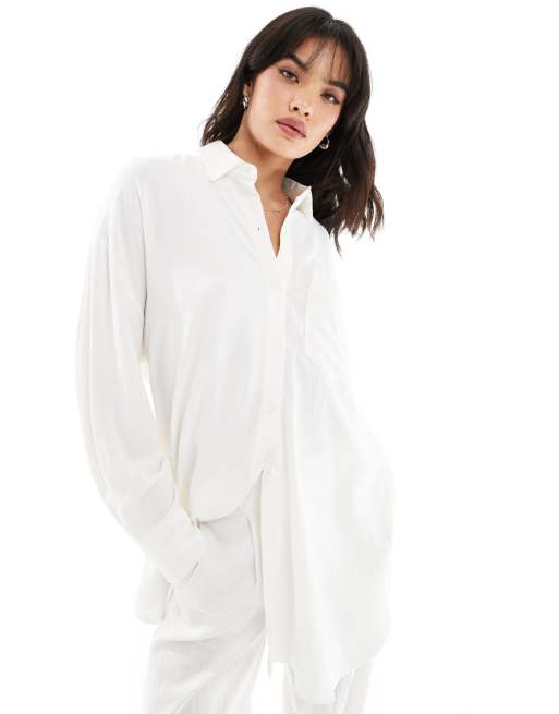 Stradivarius – Biała koszula oversize z domieszką lnu