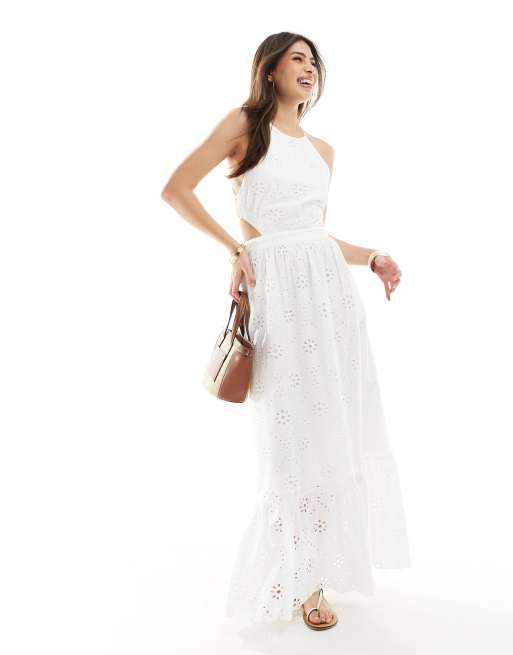 Stradivarius – Biała sukienka koronkowa z dekoltem halter