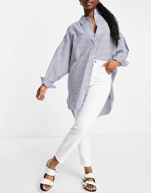 Stradivarius – Białe dopasowane mom jeans ze stretchem