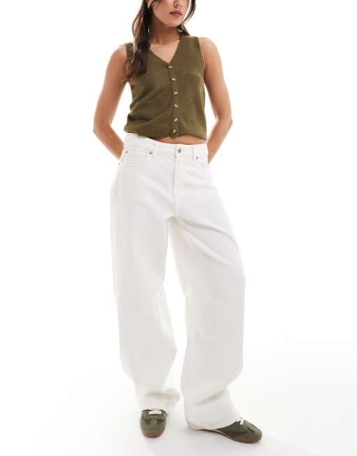Stradivarius – Białe jeansy z baryłkowymi nogawkami i regulowaną talią