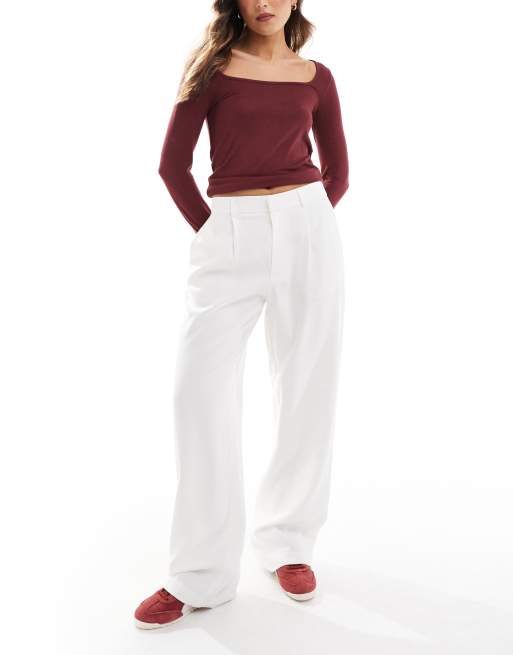 Stradivarius – Białe spodnie garniturowe typu dad