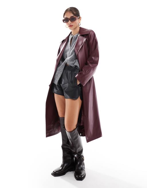 Stradivarius – Bordowy trencz z imitacji skóry