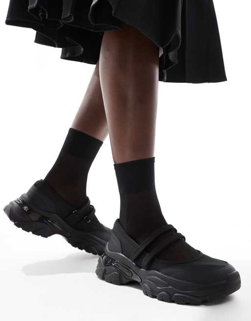 Stradivarius – Czarne balerinki w stylu butów sportowych