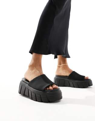 Stradivarius – Czarne klapki na masywnej płaskiej platformie
