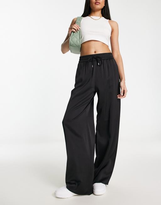 Stradivarius – Czarne marszczone spodnie z szerokimi nogawkami