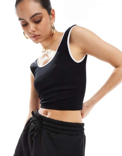 Stradivarius – Czarny top bez rękawów z kontrastowymi lamówkami