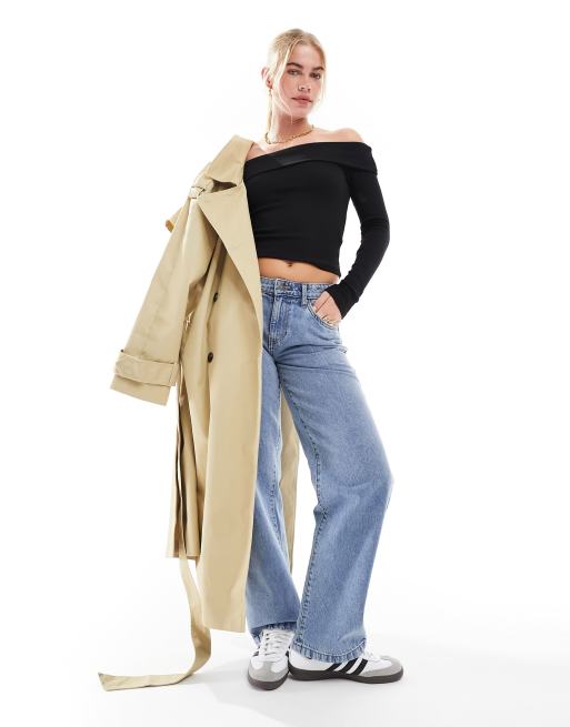 Stradivarius – Czarny top z odwijanym dekoltem i odkrytymi ramionami