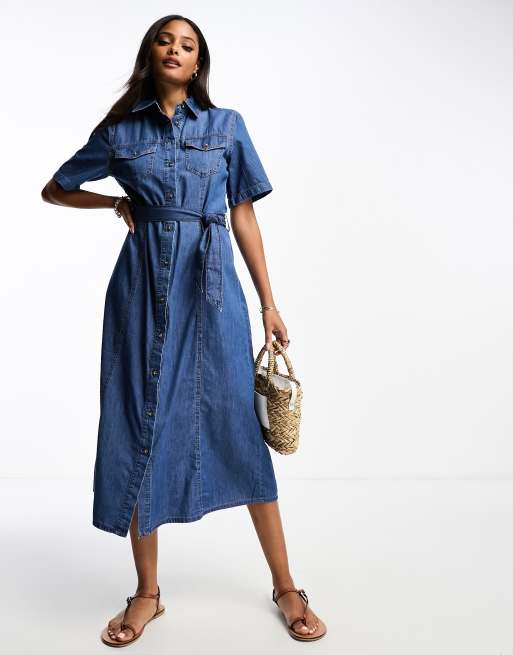 Stradivarius – Długa niebieska sukienka jeansowa