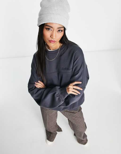 Stradivarius – Grafitowa bluza oversize z haftowanym wzorem