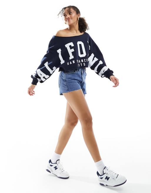 Stradivarius – Granatowa bluza o bardzo luźnym kroju z grafiką