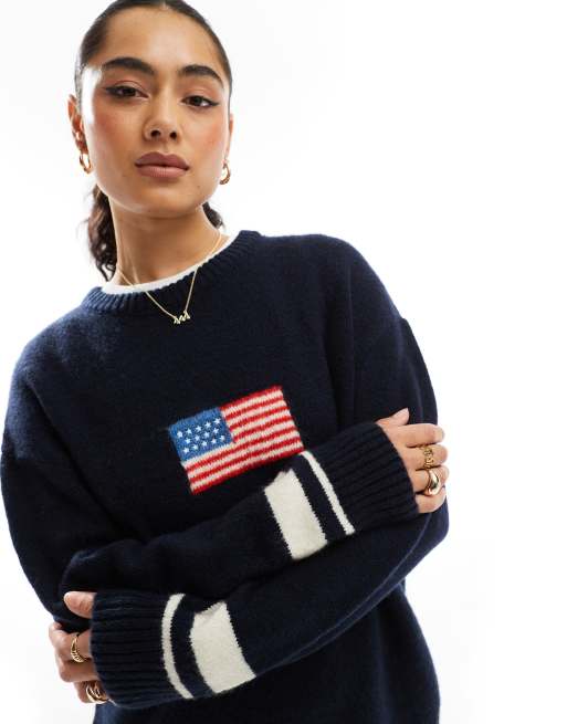 Stradivarius – Granatowy sweter z motywem USA