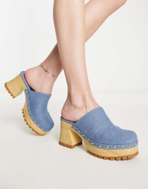 Stradivarius – Jeansowe chodaki na obcasie klockowym