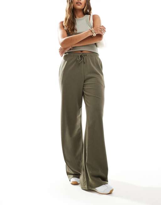 Stradivarius – Joggersy z szerokimi nogawkami w kolorze khaki