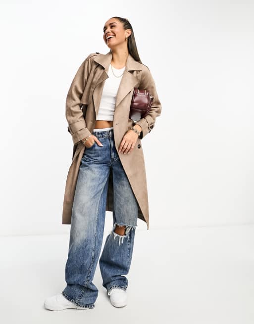Stradivarius – Kamiennobeżowy trencz z imitacji zamszu