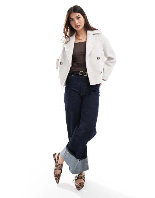 Stradivarius – Kremowa zapinana na guziki kurtka z imitacji wełny