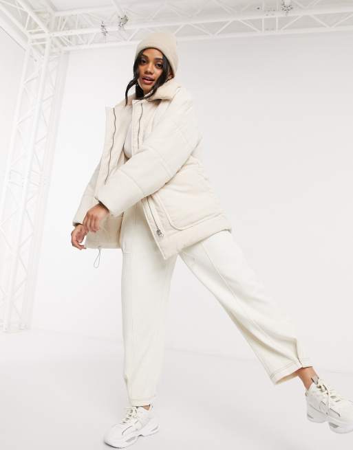 Stradivarius – Kurtka ocieplana w kolorze ecru z kołnierzem z imitacji kożuszka