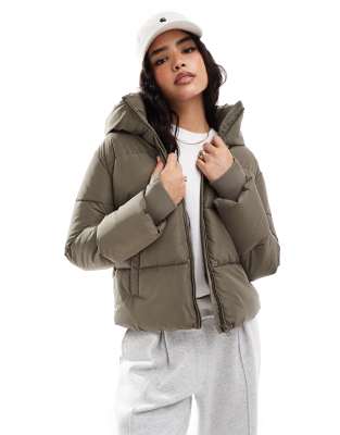 Stradivarius – Ocieplana kurtka z kapturem w kolorze khaki