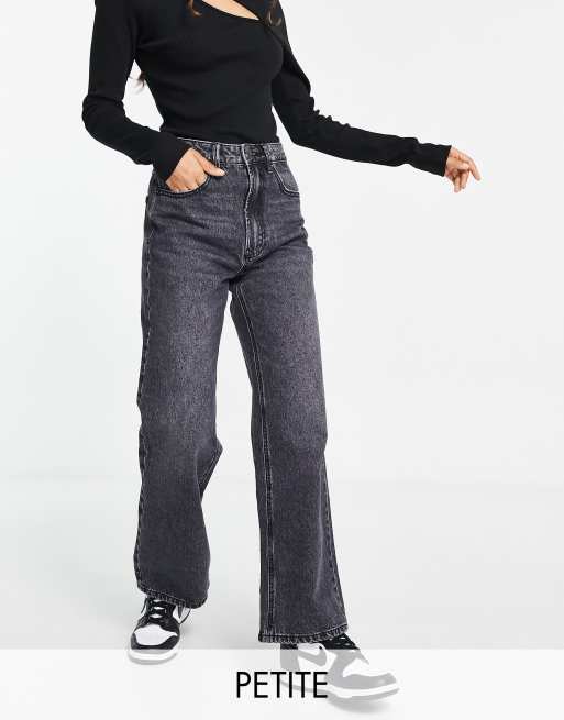 Stradivarius Petite – Czarne jeansy typu dad w stylu lat 90. z efektem sprania
