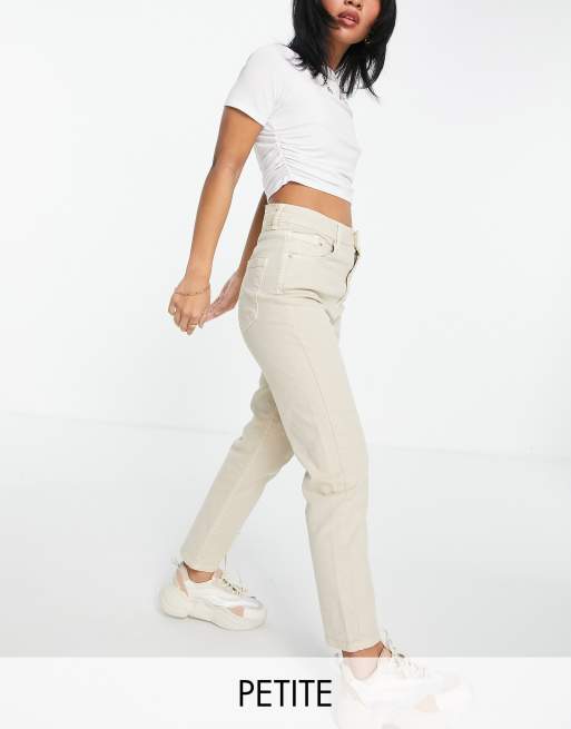 Stradivarius Petite – Jasnobeżowe jeansy o dopasowanym kroju mom fit ze stretchem