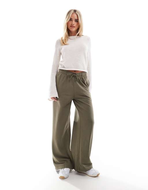 Stradivarius Petite – Joggersy z szerokimi nogawkami w kolorze khaki