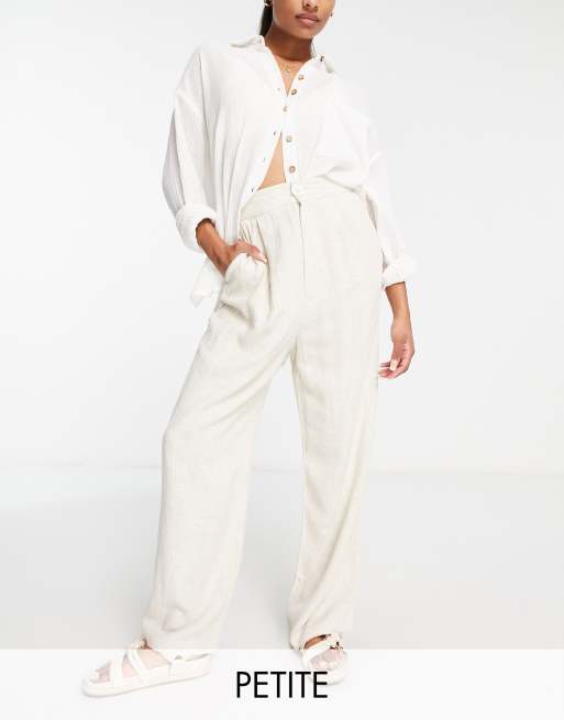 Stradivarius Petite – Lniane spodnie dad fit z szerokimi nogawkami