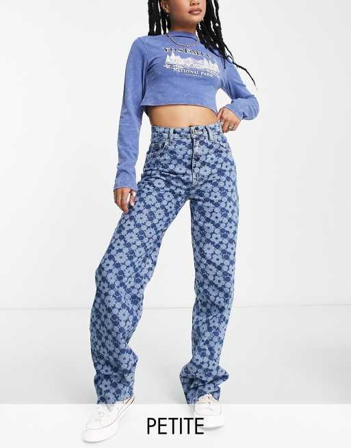 Stradivarius Petite – Niebieskie jeansy dad fit w kwiaty