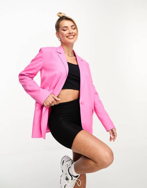 Stradivarius – Różowa marynarka oversize z imitacji lnu