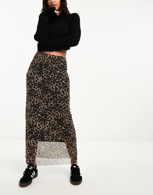 Stradivarius – Siateczkowa spódnica maxi w zwierzęcy wzór