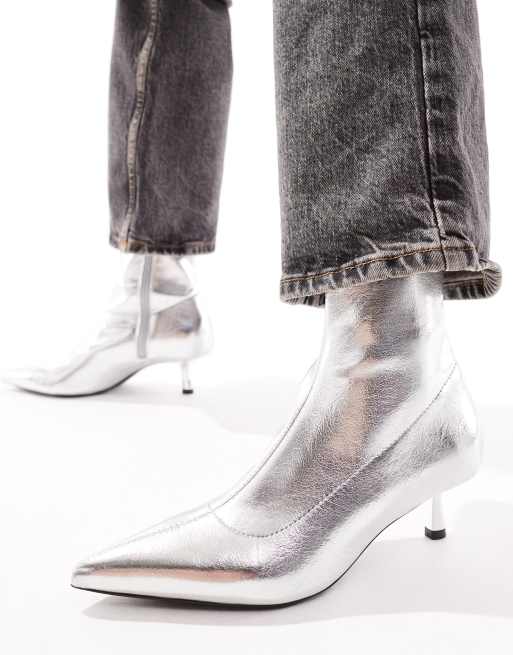 Stradivarius – Srebrne botki na obcasach kaczuszkach