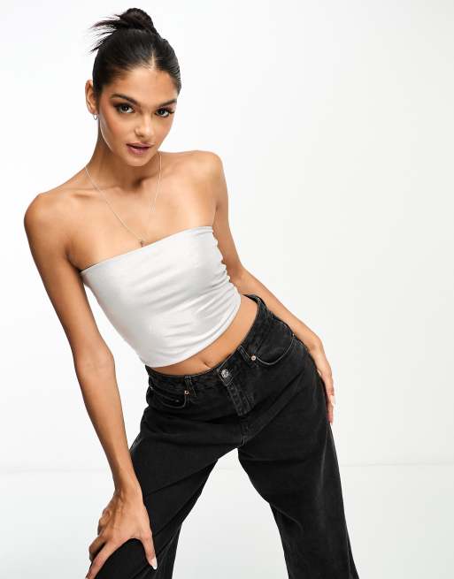 Stradivarius – Srebrny top z dekoltem bandeau