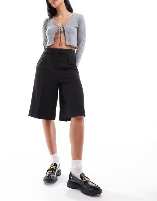 Stradivarius – STR – Czarne długie szorty o dopasowanym kroju